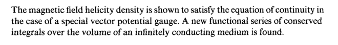 The magnetic field helicity density is shown to satisfy the equation of continuity in the case of a special vector potential gauge. A new functional series of conserved integrals over the volume of an infinitely conducting medium is found.