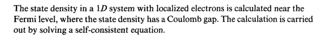 The state density in a \D system with localized electrons is calculated near the Fermi level, where the state density has a Coulomb gap. The calculation is carried out by solving a self-consistent equation.