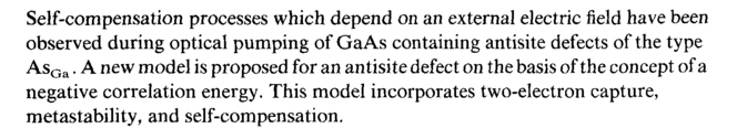 Self-compensation processes which depend on an external electric field have been observed during optical pumping of GaAs containing antisite defects of the type AsGa. A new model is proposed for an antisite defect on the basis of the concept of a negative correlation energy. This model incorporates two-electron capture, metastability, and self-compensation.