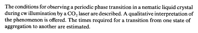 The conditions for observing a periodic phase transition in a nematic liquid crystal during cw illumination by a C02 laser are described. A qualitative interpretation of the phenomenon is offered. The times required for a transition from one state of aggregation to another are estimated.