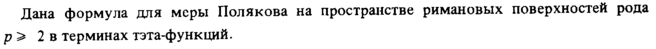 Дана формула для меры Полякова на пространстве римановых поверхностей рода