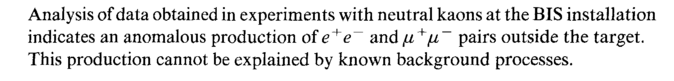 Analysis of data obtained in experiments with neutral kaons at the BIS installation indicates an anomalous production of e+e~ and pairs outside the target. This production cannot be explained by known background processes.