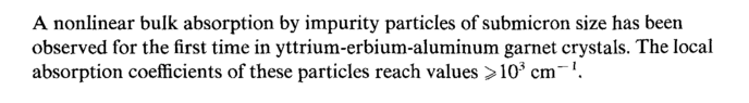 A nonlinear bulk absorption by impurity particles of submicron size has been observed for the first time in yttrium-erbium-aluminum garnet crystals. The local absorption coefficients of these particles reach values >103 cm-1.