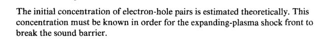 The initial concentration of electron-hole pairs is estimated theoretically. This concentration must be known in order for the expanding-plasma shock front to break the sound barrier.