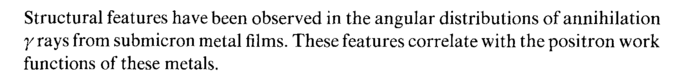 Structural features have been observed in the angular distributions of annihilation γ rays from submicron metal films. These features correlate with the positron work functions of these metals.