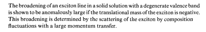 The broadening of an exciton line in a solid solution with a degenerate valence band is shown to be anomalously large if the translational mass of the exciton is negative. This broadening is determined by the scattering of the exciton by composition fluctuations with a large momentum transfer.