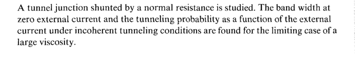A tunnel junction shunted by a normal resistance is studied. The band width at zero external current and the tunneling probability as a function of the external current under incoherent tunneling conditions are found for the limiting case of a large viscosity.