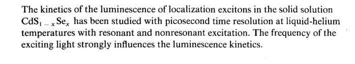 The kinetics of the luminescence of localization excitons in the solid solution CdSj _xSex has been studied with picosecond time resolution at liquid-helium temperatures with resonant and nonresonant excitation. The frequency of the exciting light strongly influences the luminescence kinetics.
