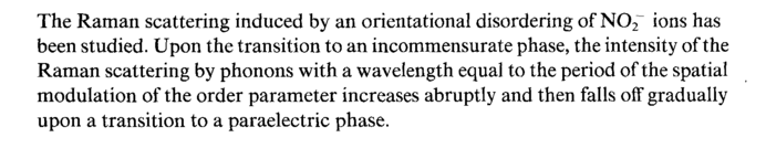 The Raman scattering induced by an orientational disordering of N02~ ions has been studied. Upon the transition to an incommensurate phase, the intensity of the Raman scattering by phonons with a wavelength equal to the period of the spatial modulation of the order parameter increases abruptly and then falls off gradually upon a transition to a paraelectric phase.