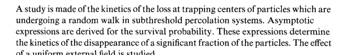 A study is made of the kinetics of the loss at trapping centers of particles which are undergoing a random walk in subthreshold percolation systems. Asymptotic expressions are derived for the survival probability. These expressions determine the kinetics of the disappearance of a significant fraction of the particles. The effect