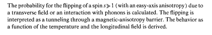 The probability for the flipping of a spin s> 1 (with an easy-axis anisotropy) due to a transverse field or an interaction with phonons is calculated. The flipping is interpreted as a tunneling through a magnetic-anisotropy barrier. The behavior as a function of the temperature and the longitudinal field is derived.