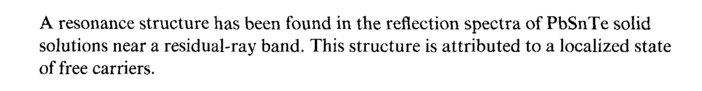 A resonance structure has been found in the reflection spectra of PbSnTe solid solutions near a residual-ray band. This structure is attributed to a localized state of free carriers.