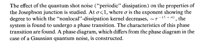 The effect of the quantum shot noise ("periodic" dissipation) on the properties of the Josephson junction is studied. At σ<1, where σ is the exponent showing the degree to which the "nonlocal"-dissipation kernel decreases, ~τ ~(1 + σ), the system is found to undergo a phase transition. The characteristics of this phase transition are found. A phase diagram, which differs from the phase diagram in the case of a Gaussian quantum noise, is constructed.