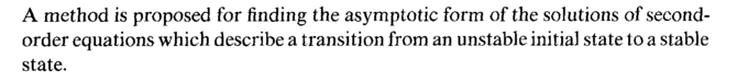 A method is proposed for finding the asymptotic form of the solutions of second-order equations which describe a transition from an unstable initial state to a stable state.