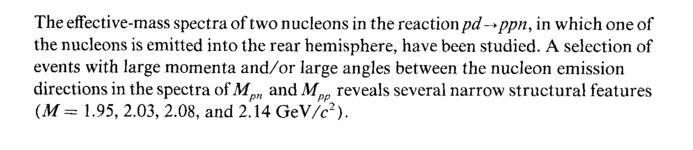 The effective-mass spectra of two nucleons in the reaction pd -»ppn9 in which one of the nucleons is emitted into the rear hemisphere, have been studied. A selection of events with large momenta and/or large angles between the nucleoli emission directions in the spectra of Mpn and Mpp reveals several narrow structural features (M= 1.95, 2.03, 2.08, and 2.14 GcV/c2).