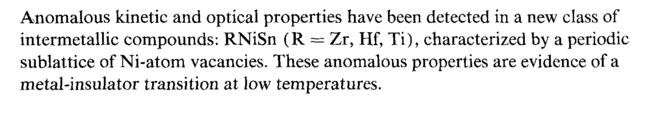 Anomalous kinetic and optical properties have been detected in a new class of intermetallic compounds: RNiSn (R = Zr, Hf, Ti), characterized by a periodic sublattice of Ni-atom vacancies. These anomalous properties are evidence of a metal-insulator transition at low temperatures.
