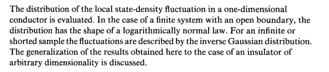 The distribution, of the local state-density fluctuation in a one-dimensional conductor is evaluated. In the case of a finite system with an open boundary, the distribution has the shape of a logarithmically normal law. For an infinite or shorted sample the fluctuations are described by the inverse Gaussian distribution. The generalization of the results obtained here to the case of an insulator of arbitrary dimensionality is discussed.