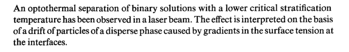 An optothermal separation of binary solutions with a lower critical stratification temperature has been observed in a laser beam. The effect is interpreted on the basis of a drift of particles of a disperse phase caused by gradients in the surface tension at the interfaces.