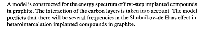 A model is constructed for the energy spectrum of first-step implanted compounds in graphite. The interaction of the carbon layers is taken into account. The model predicts that there will be several frequencies in the Shubnikov-de Haas effect in heterointercalation implanted compounds in graphite.