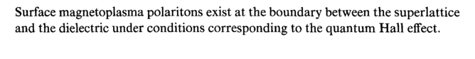 Surface magnetoplasma polaritons exist at the boundary between the superlattice and the dielectric under conditions corresponding to the quantum Hall effect.