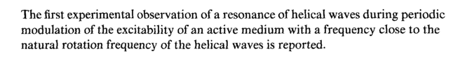 The first experimental observati on of a resonance of helical waves during periodic modulation of the excitability of an active medium with a frequency close to the natural rotation frequency of the helical waves is reported.