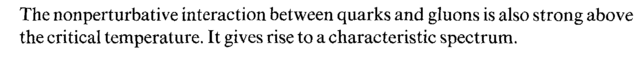 The nonperturbative interaction between quarks and gluons is also strong above the critical temperature. It gives rise to a characteristic spectrum.