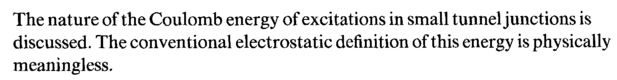 The nature of the Coulomb energy of excitations in small tunnel junctions is discussed. The conventional electrostatic definition of this energy is physically meaningless.