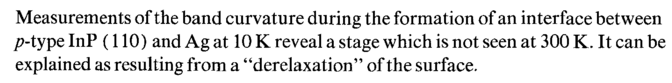 Measurements of the band curvature during the formation of an interface between p-type InP (110) and Ag at 10 К reveal a stage which is not seen at 300 K. It can be explained as resulting from a "derelaxation" of the surface.