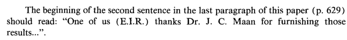 The beginning of the second sentence in the last paragraph of this paper (p. 629) should read: "One of us (E.I.R.) thanks Dr. J. С Maan for furnishing those results...".