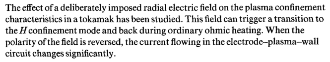 The effect of a deliberately imposed radial electric field on the plasma confinement characteristics in a tokamak has been studied. This field can trigger a transition to the Η confinement mode and back during ordinary ohmic heating. When the polarity of the field is reversed, the current flowing in the electrode-plasma-wall circuit changes significantly.