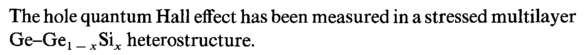 The hole quantum Hall effect has been measured in a stressed multilayer Ge-Gej _xSix heterostructure.