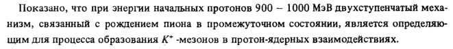 Показано, что при энергии начальных протонов 900 1000 МэВ двухступенчатый механизм, связанный с рождением пиона в промежуточном состоянии, является определяющим для процесса образования К+ -мезонов в протон-ядерных взаимодействиях.