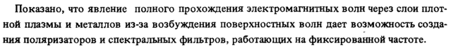 Показано, что явление полного прохождения электромагнитных волн через слои плотной плазмы и металлов из-за возбуждения поверхностных волн дает возможность создания поляризаторов и спектральных фильтров, работающих на фиксированной частоте.