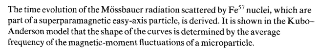 The time evolution of the Mossbauer radiation scattered by Fe57 nuclei, which are part of a superparamagnetic easy-axis particle, is derived. It is shown in the Kubo-Anderson model that the shape of the curves is determined by the average frequency of the magnetic-moment fluctuations of a microparticle.