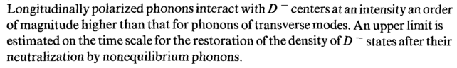 Longitudinally polarized phonons interact with D ~ centers at an intensity an order of magnitude higher than that for phonons of transverse modes. An upper limit is estimated on the time scale for the restoration of the density of D ~ states after their neutralization by nonequilibrium phonons.