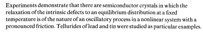 Experiments demonstrate that there are semiconductor crystals in which the relaxation of the intrinsic defects to an equilibrium distribution at a fixed temperature is of the nature of an oscillatory process in a nonlinear system with a pronounced friction. Tellurides of lead and tin were studied as particular examples.