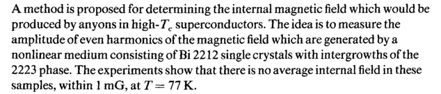 A method is proposed for determining the internal magnetic field which would be produced by anyons in high-T^ superconductors. The idea is to measure the amplitude of even harmonics of the magnetic field which are generated by a nonlinear medium consisting of Bi 2212 single crystals with intergrowths of the 2223 phase. The experiments show that there is no average internal field in these samples, within 1 mG, at Τ = 77 К.