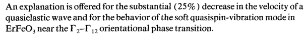An explanation is offered for the substantial (25%) decrease in the velocity of a quasielastic wave and for the behavior of the soft quasispin-vibration mode in ErFe03 near the Γ2-Γ12 orientational phase transition.