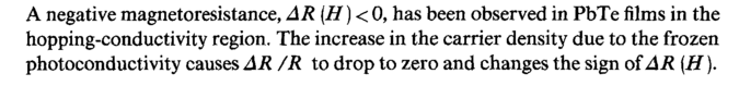 A negative magnetoresistance, AR [H) < 0, has been observed in PbTe films in the hopping-conductivity region. The increase in the carrier density due to the frozen photoconductivity causes AR /R to drop to zero and changes the sign of AR [H).