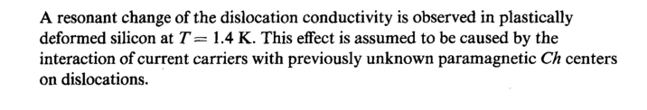 A resonant change of the dislocation conductivity is observed in plastically deformed silicon at T= 1.4 K. This effect is assumed to be caused by the interaction of current carriers with previously unknown paramagnetic Ch centers on dislocations.