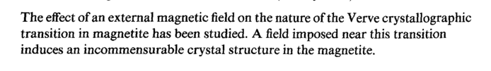 The effect of an external magnetic field on the nature of the Verve crystallographic transition in magnetite has been studied. A field imposed near this transition induces an incommensurable crystal structure in the magnetite.