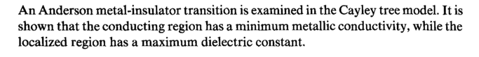 An Anderson metal-insulator transition is examined in the Cayley tree model. It is shown that the conducting region has a minimum metallic conductivity, while the localized region has a maximum dielectric constant.