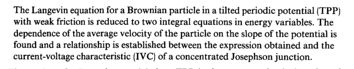 The Langevin equation for a Brownian particle in a tilted periodic potential (TPP) with weak friction is reduced to two integral equations in energy variables. The dependence of the average velocity of the particle on the slope of the potential is found and a relationship is established between the expression obtained and the current-voltage characteristic (IVC) of a concentrated Josephson junction.