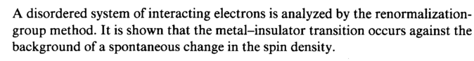 A disordered system of interacting electrons is analyzed by the renormalization-group method. It is shown that the metal-insulator transition occurs against the background of a spontaneous change in the spin density.
