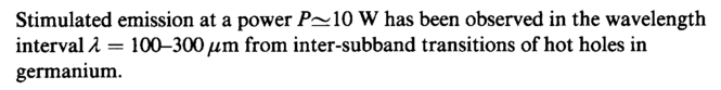 Stimulated emission at a power P^\0 W has been observed in the wavelength interval Я = 100-300 μτη from inter-subband transitions of hot holes in germanium.