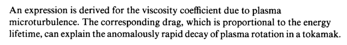 An expression is derived for the viscosity coefficient due to plasma microturbulence. The corresponding drag, which is proportional to the energy lifetime, can explain the anomalously rapid decay of plasma rotation in a tokamak.