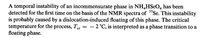A temporal instability of an incommensurate phase in NH4HSe04 has been detected for the first time on the basis of the NMR spectra of 77Se. This instability is probably caused by a dislocation-induced floating of this phase. The critical temperature for the process, TCI = — 2 °C, is interpreted as a phase transition to a floating phase.