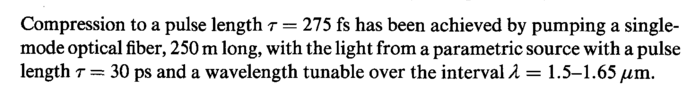 Compression to a pulse length r = 275 fs has been achieved by pumping a single-mode optical fiber, 250 m long, with the light from a parametric source with a pulse length r — 30 ps and a wavelength tunable over the interval λ = 1.5-1.65 μτη.