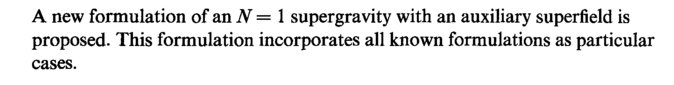 1 supergravity with an auxiliary superfield is proposed. This formulation incorporates all known formulations as particular cases.
