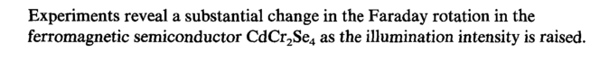 Experiments reveal a substantial change in the Faraday rotation in the ferromagnetic semiconductor CdCr2Se4 as the illumination intensity is raised.